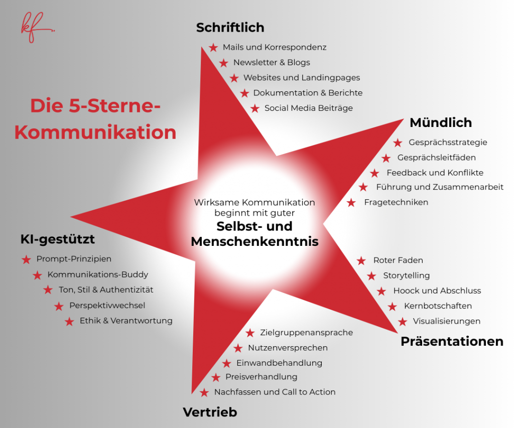 Investieren Sie in wirksame Kommunikation, die Menschenkenntnis, Storytelling und KI-gestützte Prozesse verbindet. Die Ergebnisse sind motivierte Mitarbeitende, begeisterte Kunden und ein Unternehmen, das systematisch Erfolg generiert.